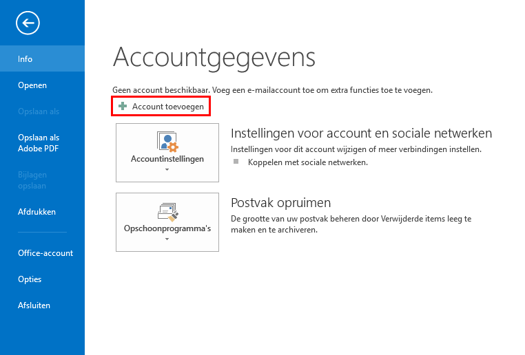 1. Kies Bestand en klik op Account toevoegen