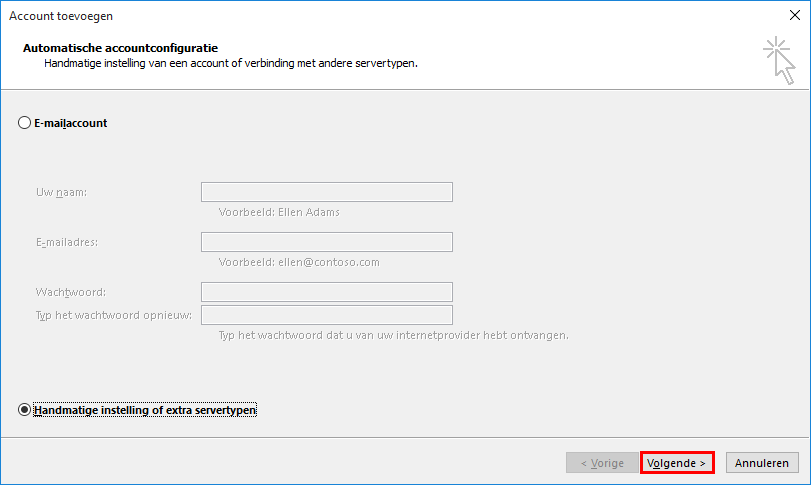 1. Selecteer “Handmatige instelling of extra servertypen”
